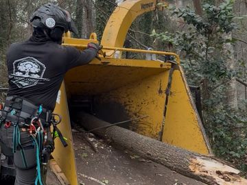 Is the process of turning branches and tree debris into small wood chip for easy disposal or reuse as mulch.